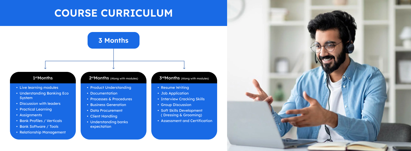 Staff with bank lack in skills & knowledge various departments to choose from Industry is looking for professional & people ready to work. With 3Months of training any graduate can crack interview